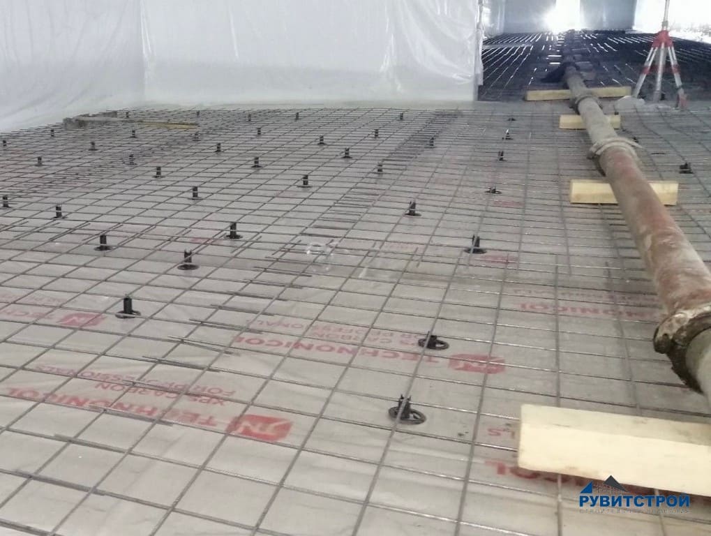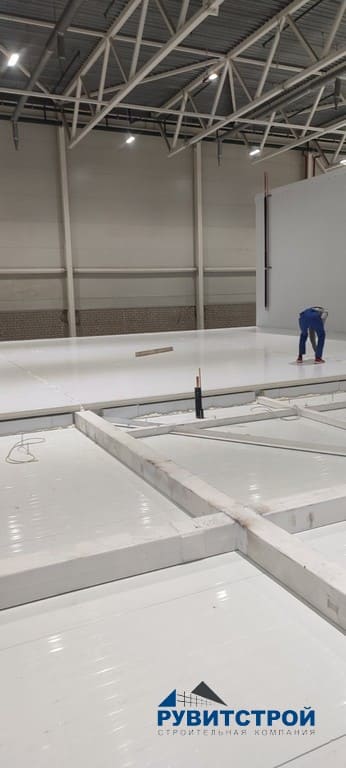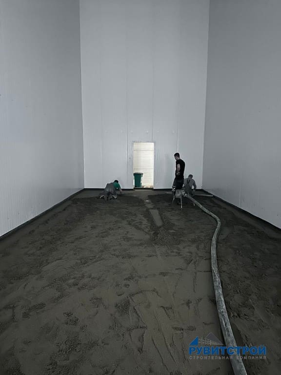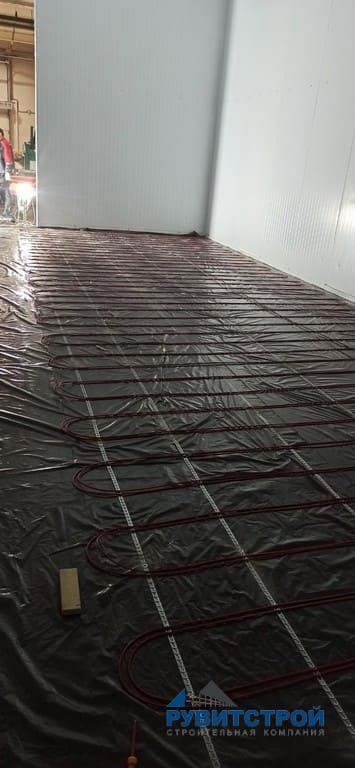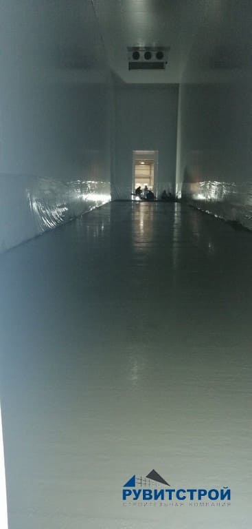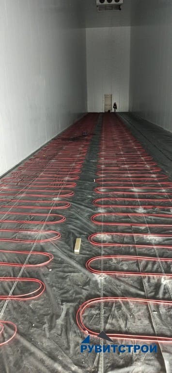 - Устройство в низкотемпературной камере подогрев пола, с последующей стяжкой.