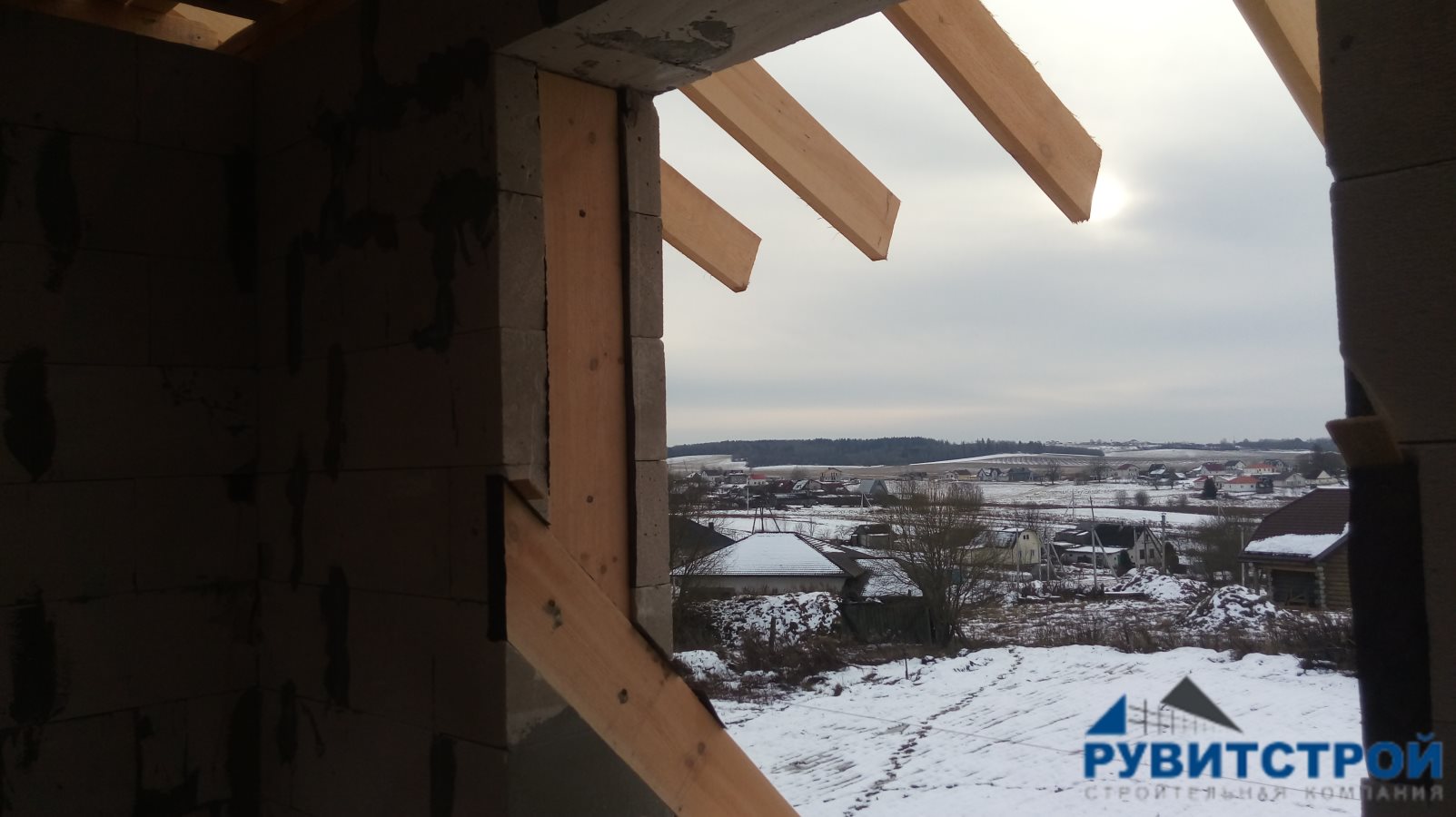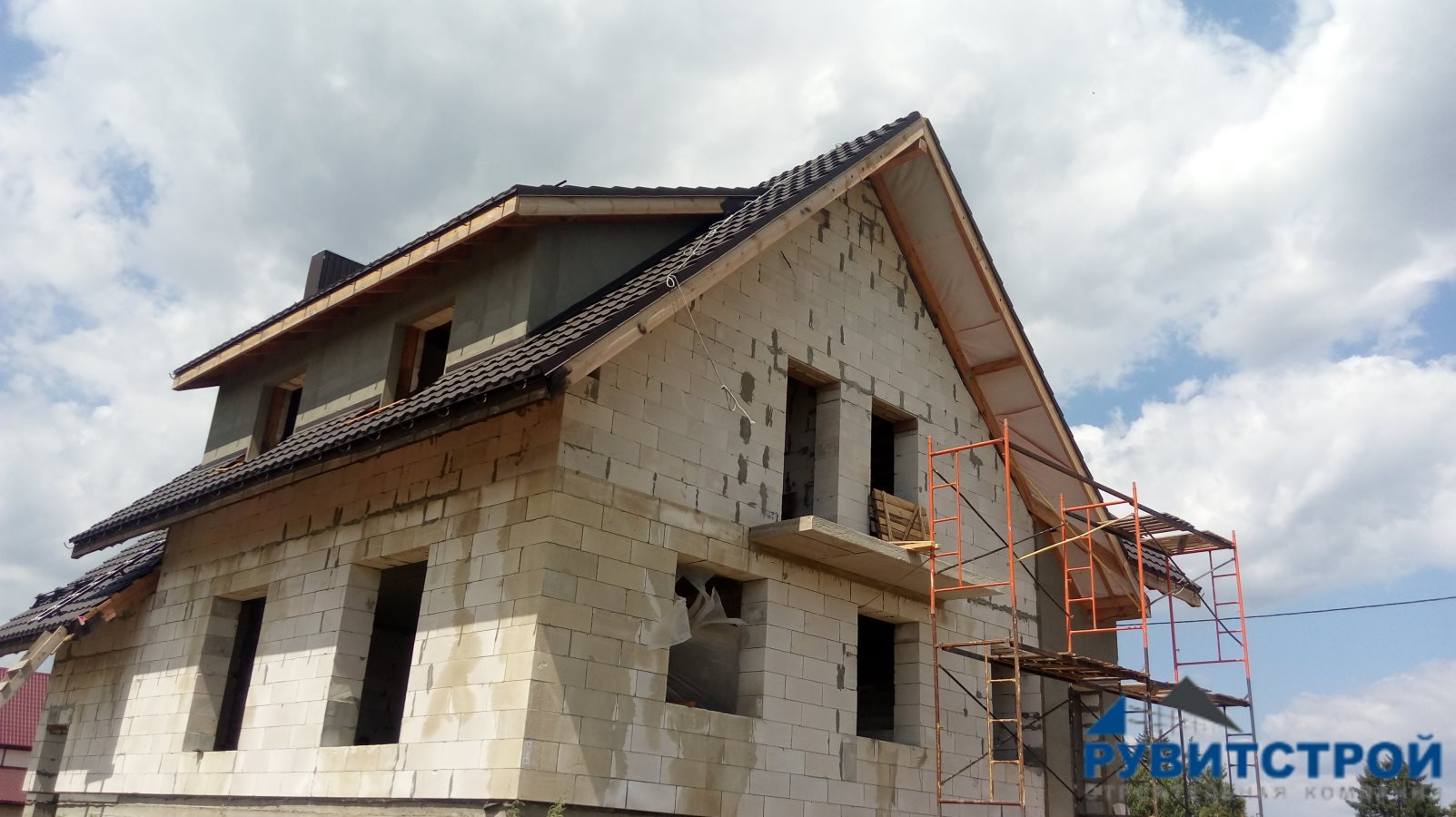 - Устройство монолитного железобетонного пояса, перемычек над окнами, балки, колонны