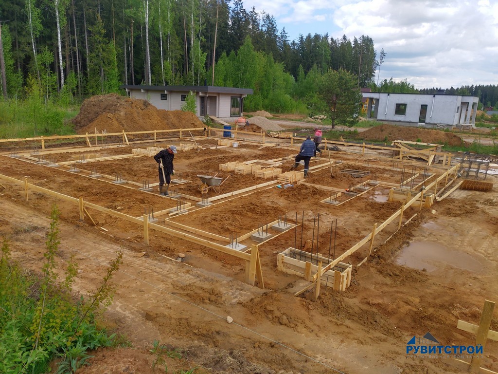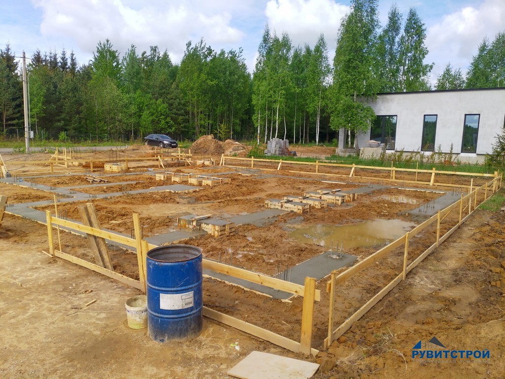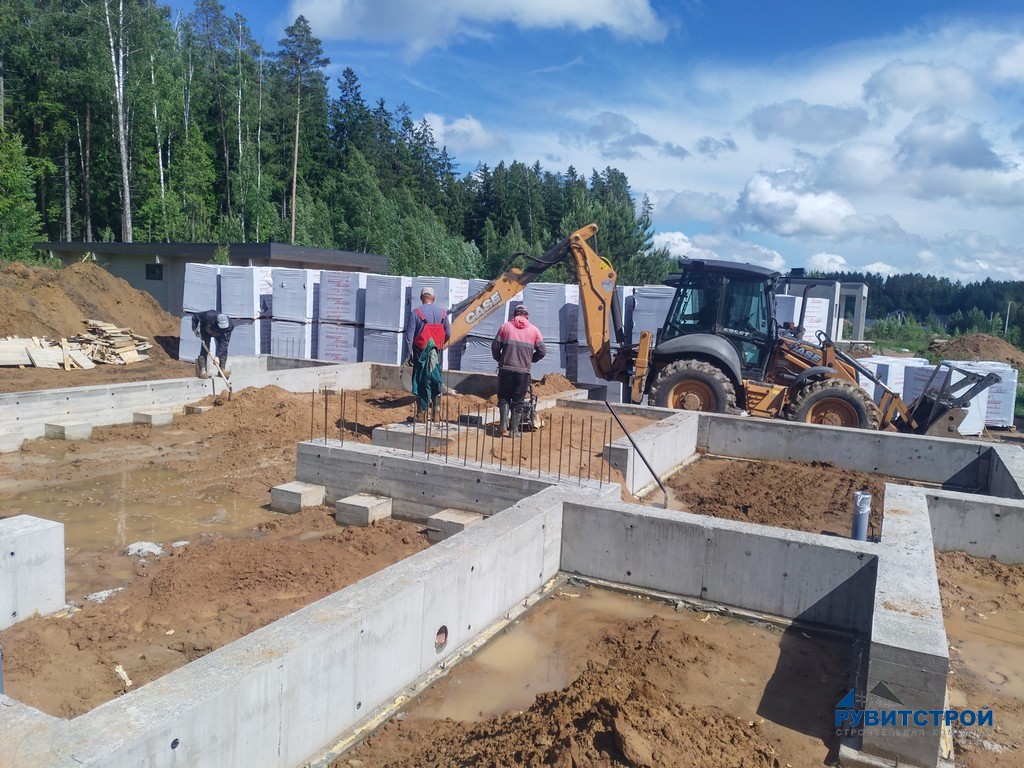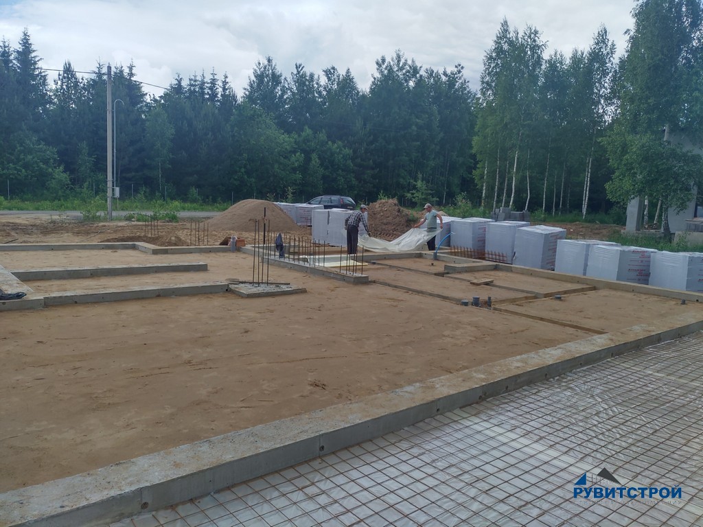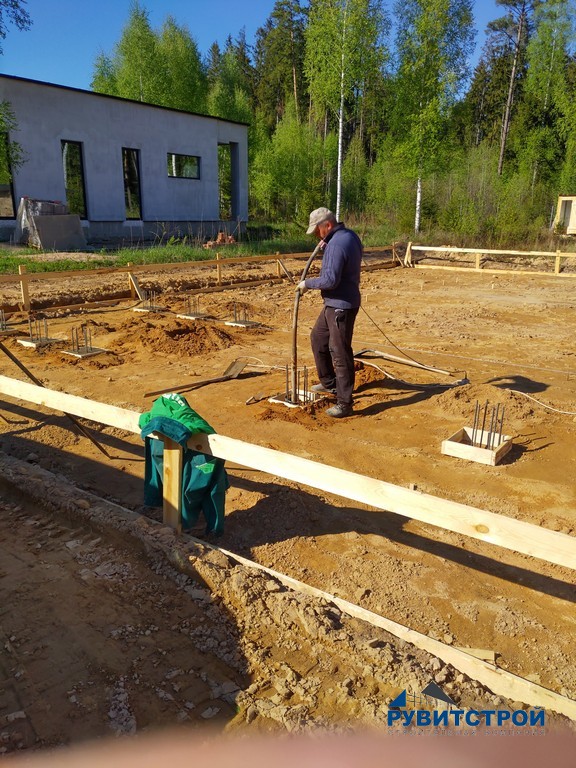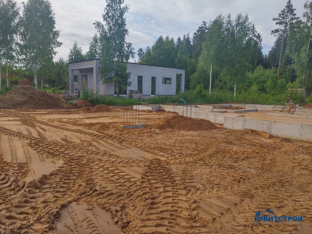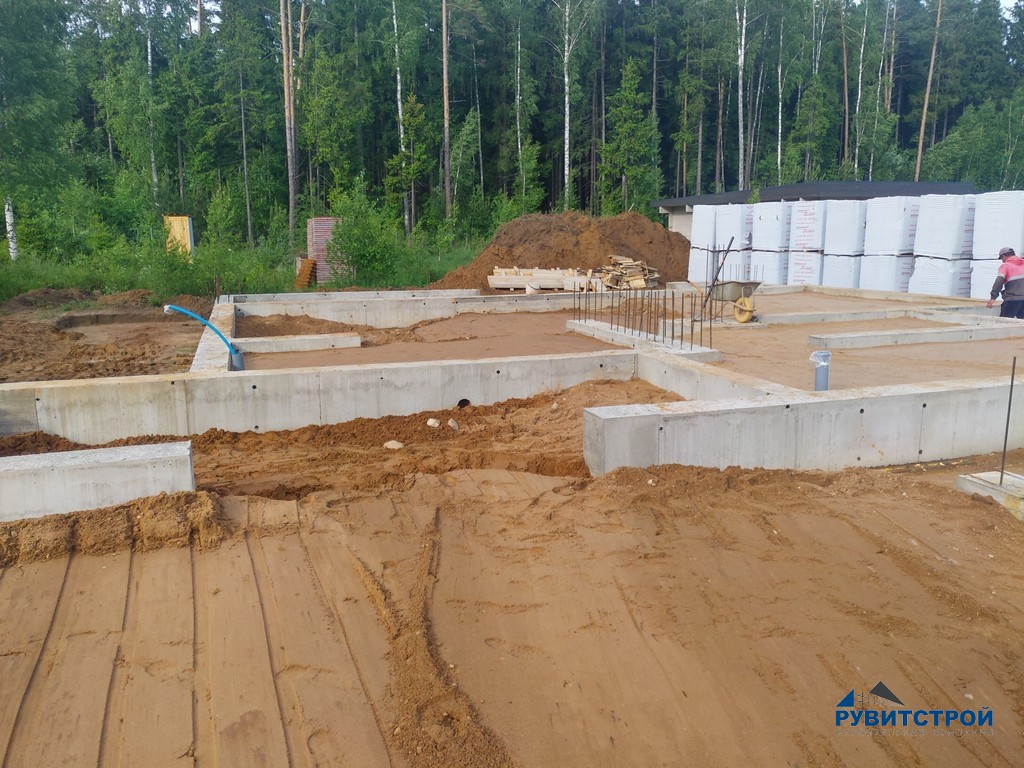 - Снятие плодородного слоя, откопка котлована, отсыпка песчано-гравийной подушки, трамбовка