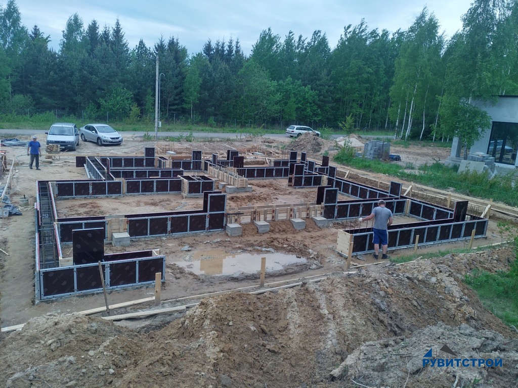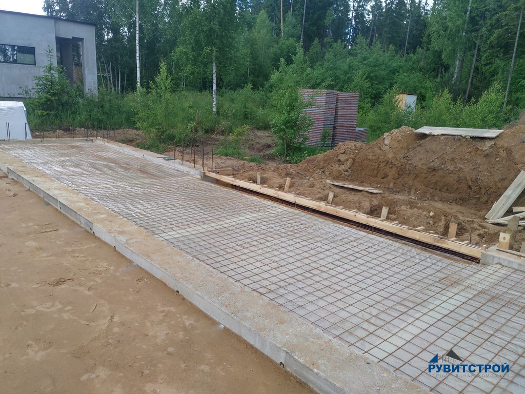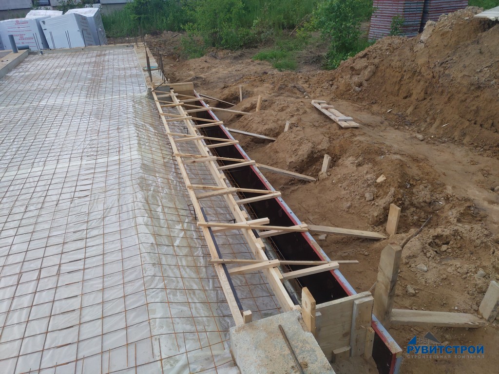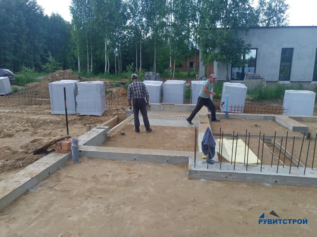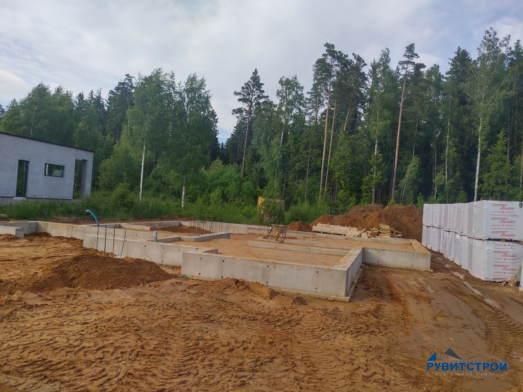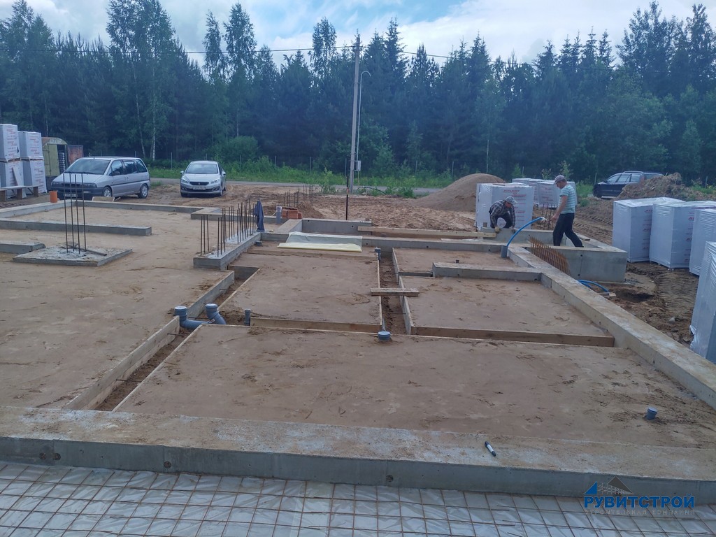 - Снятие плодородного слоя, откопка котлована, отсыпка песчано-гравийной подушки, трамбовка
