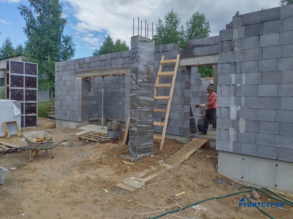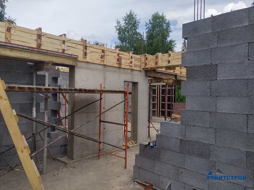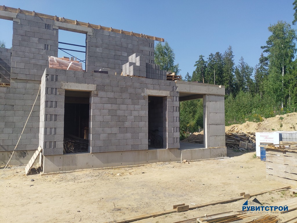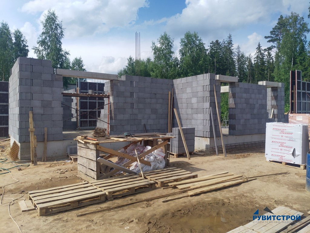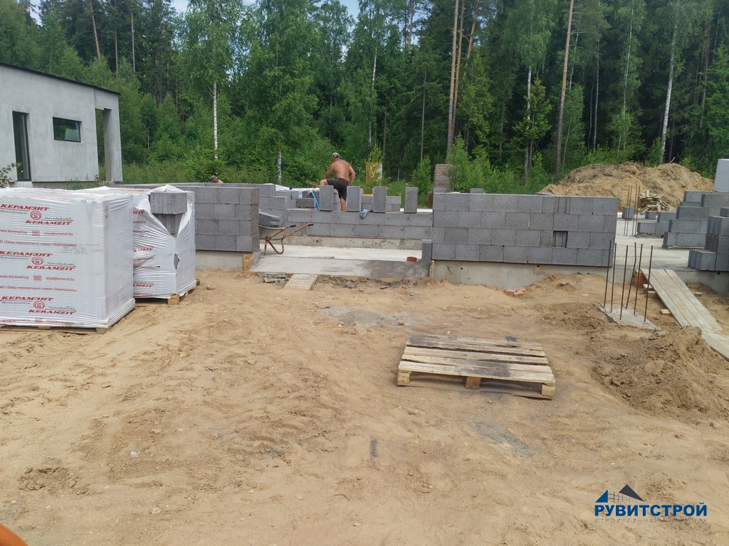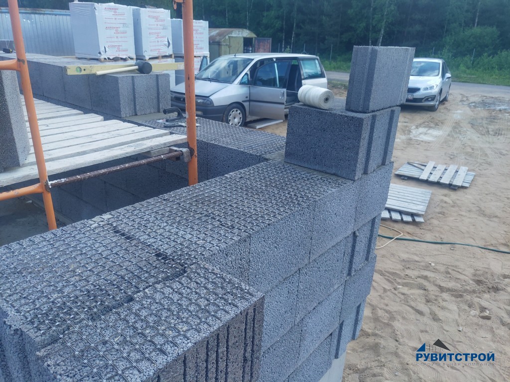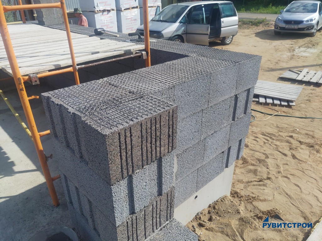 - Возведение стен в доме из керамзитобетонных блоков 400мм с армированием сеткой