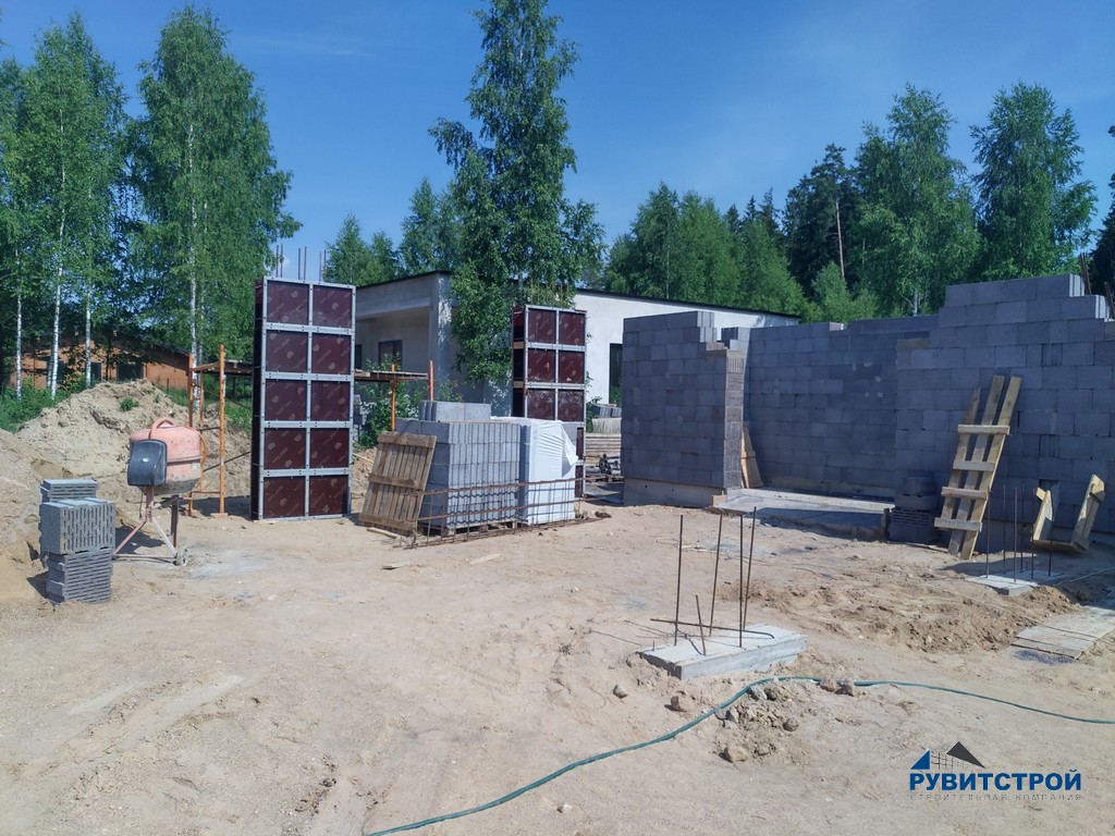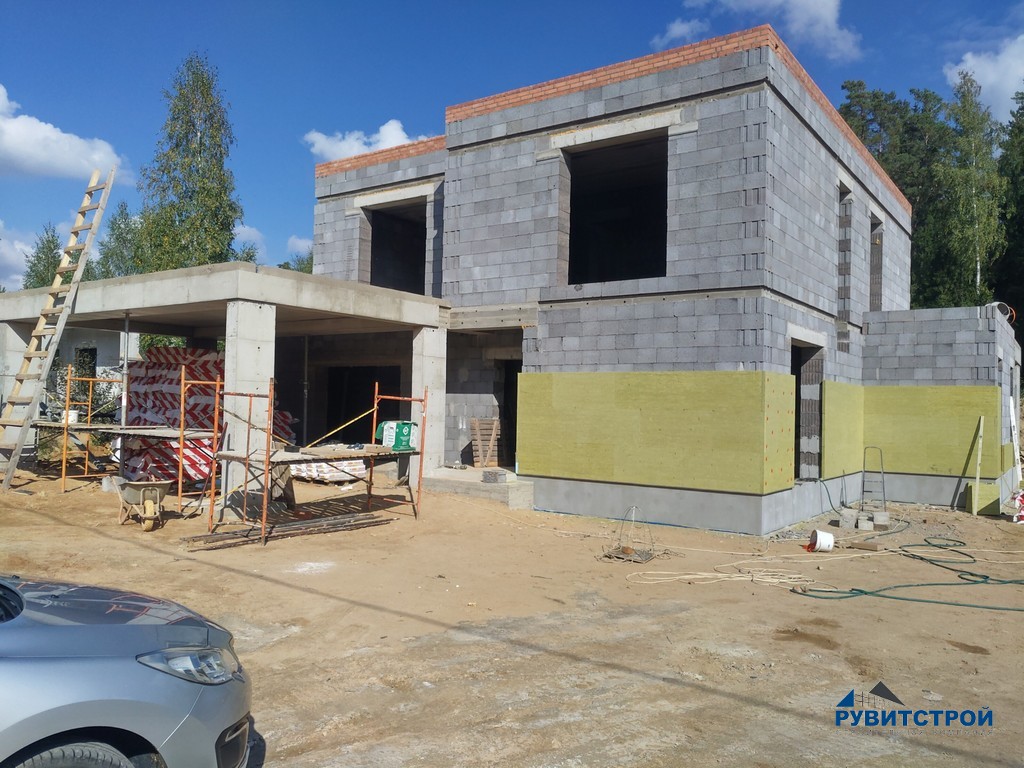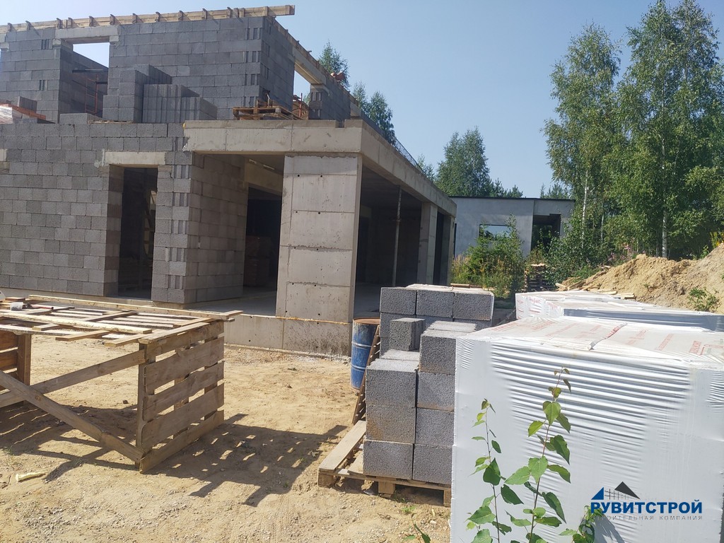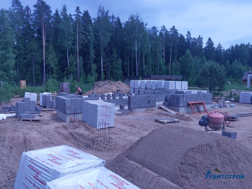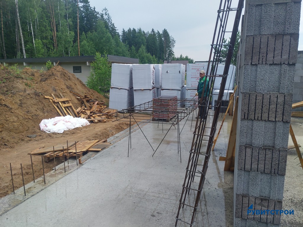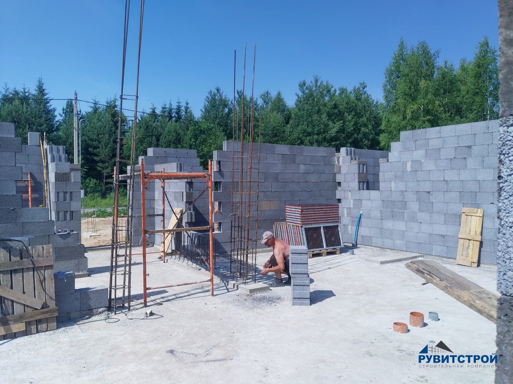 - Возведение стен в доме из керамзитобетонных блоков 400мм с армированием сеткой