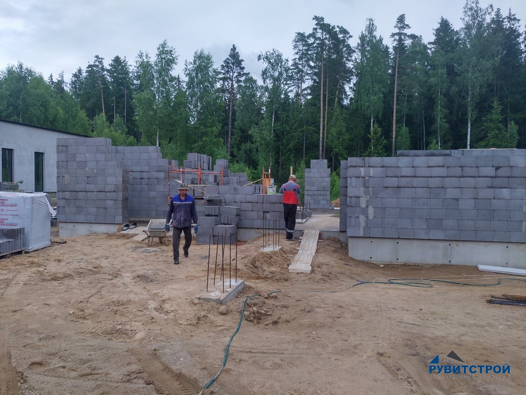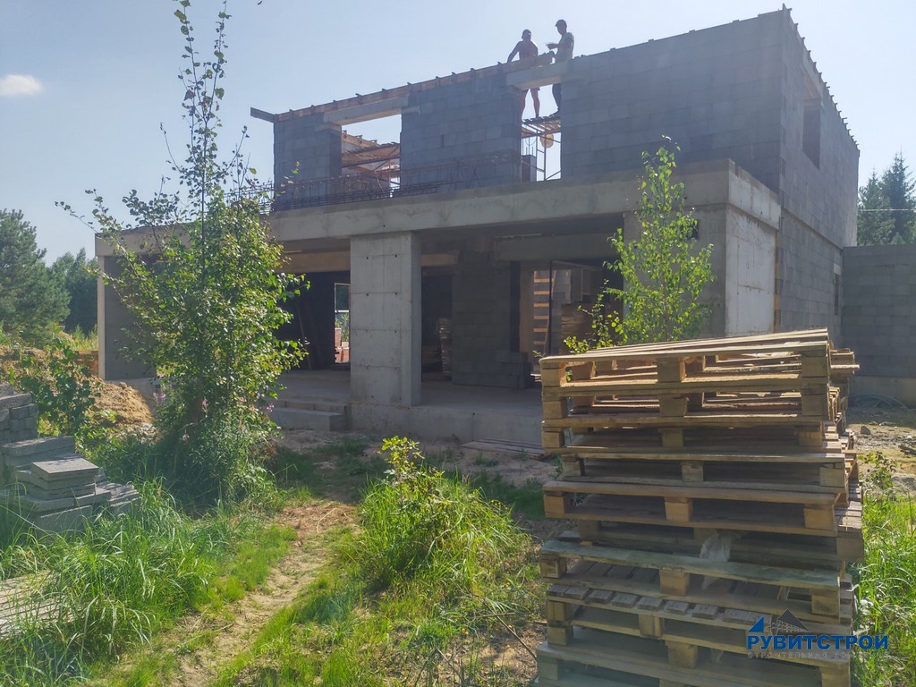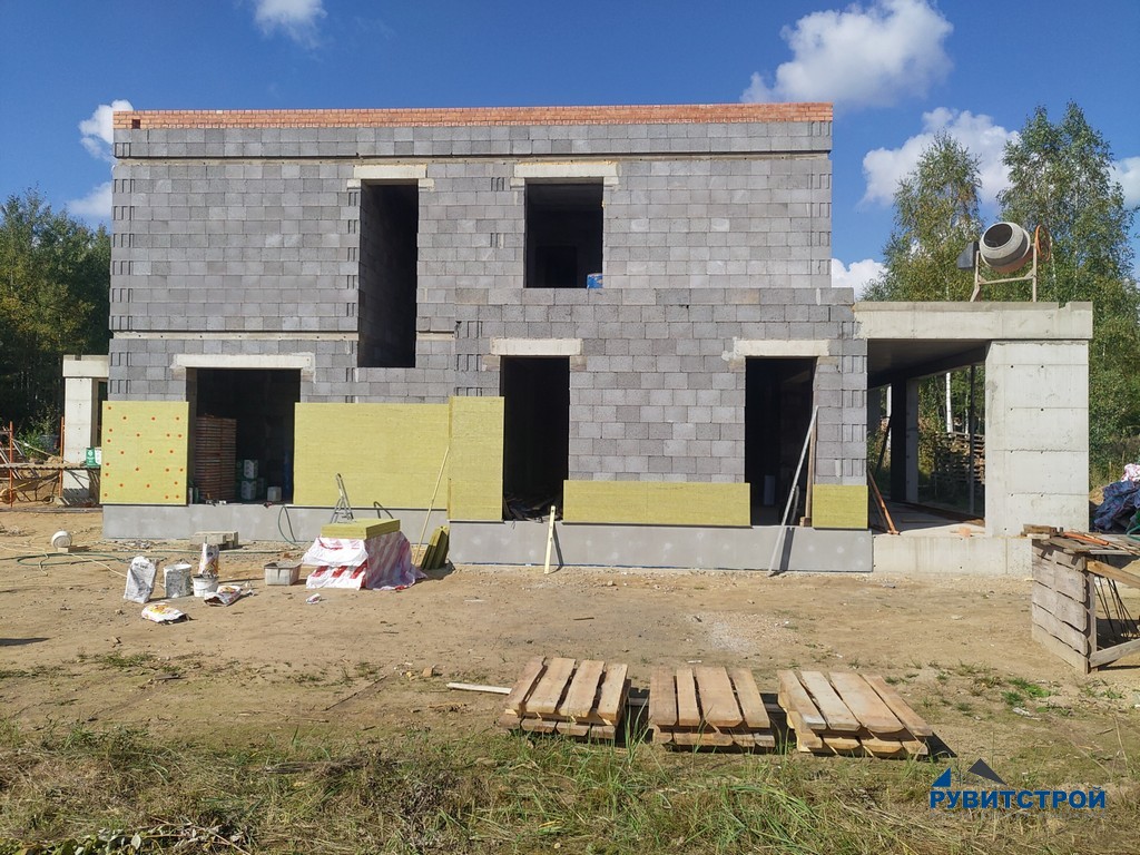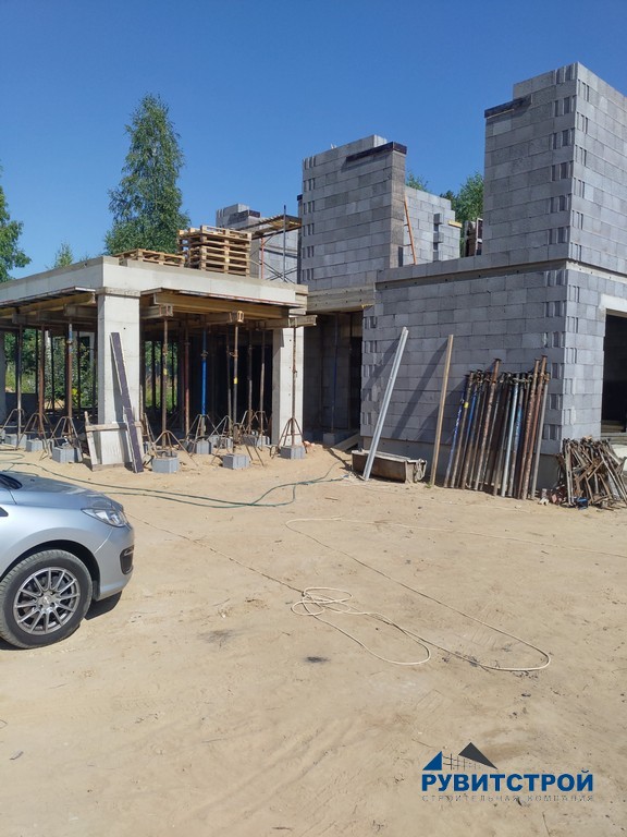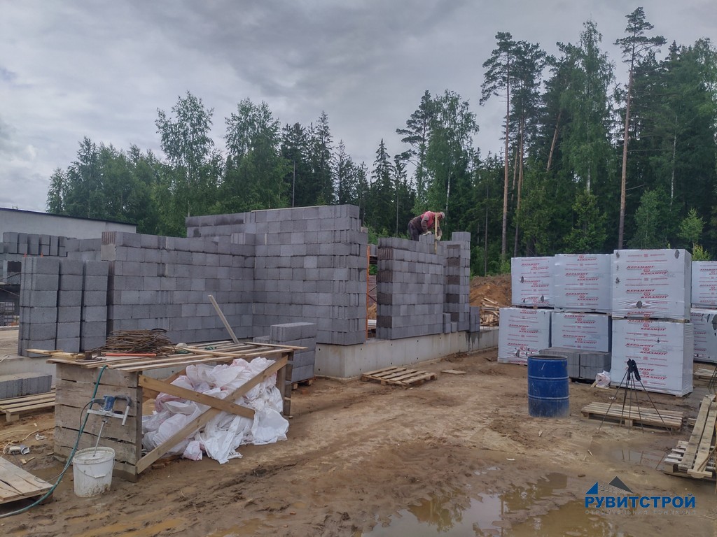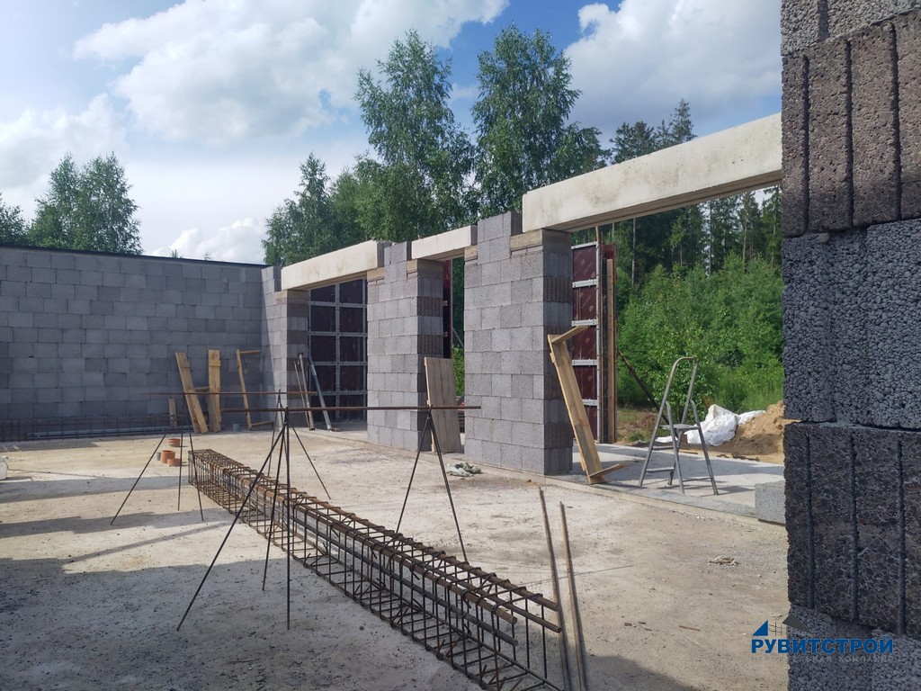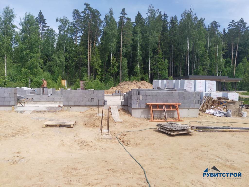 - Возведение стен в доме из керамзитобетонных блоков 400мм с армированием сеткой
