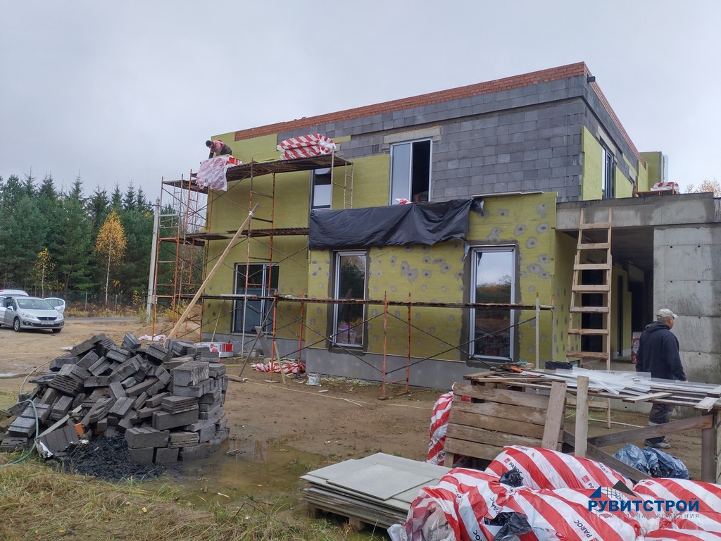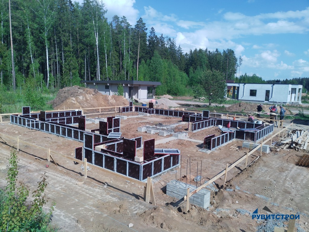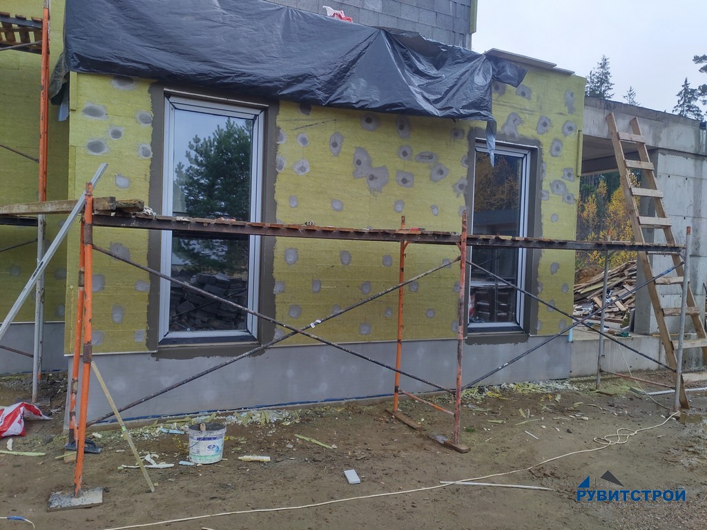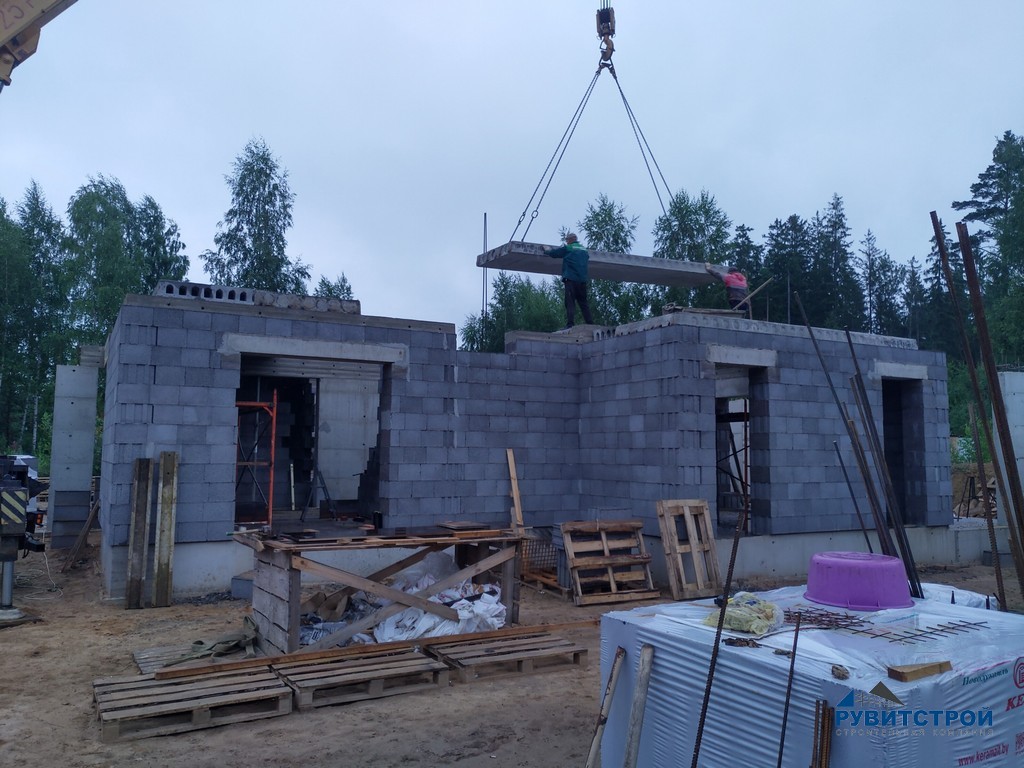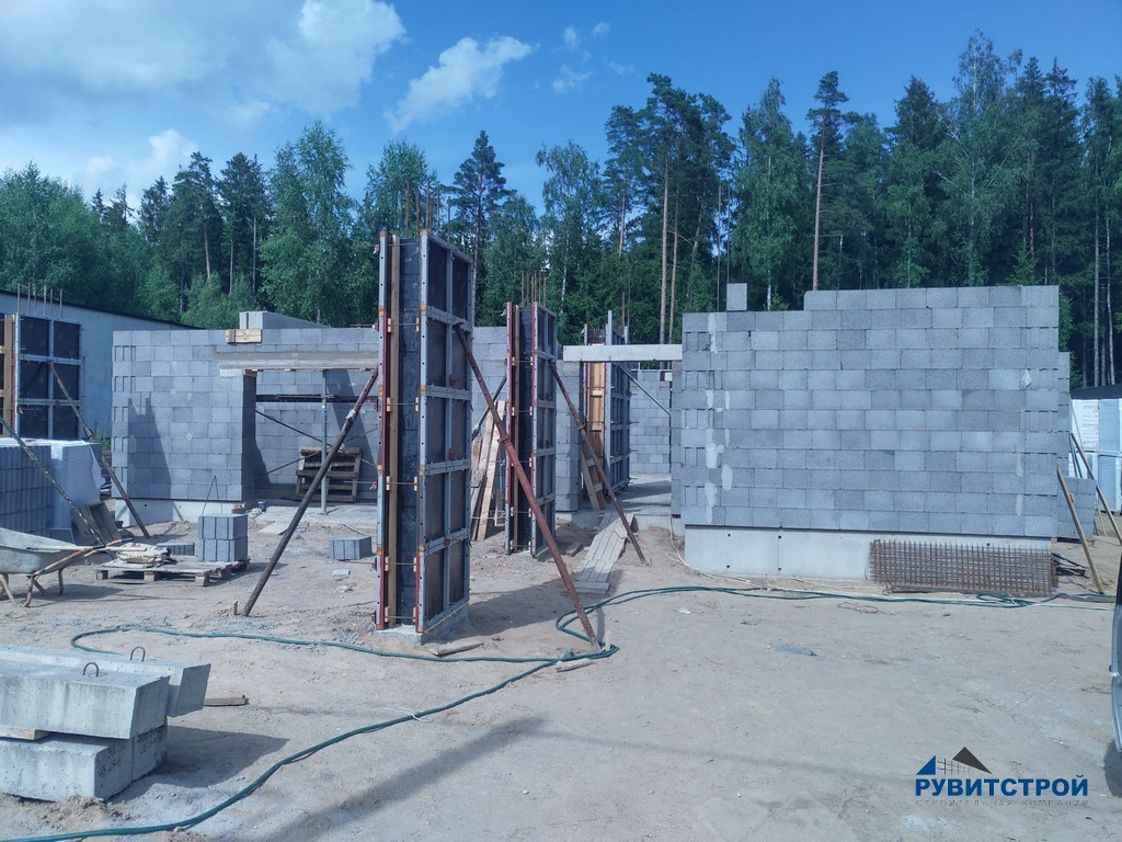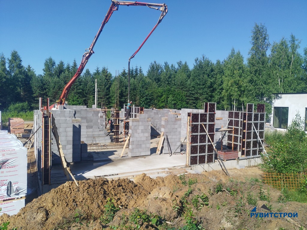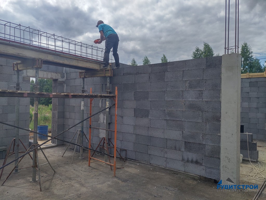 - Возведение стен в доме из керамзитобетонных блоков 400мм с армированием сеткой