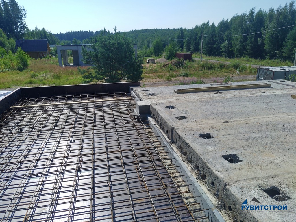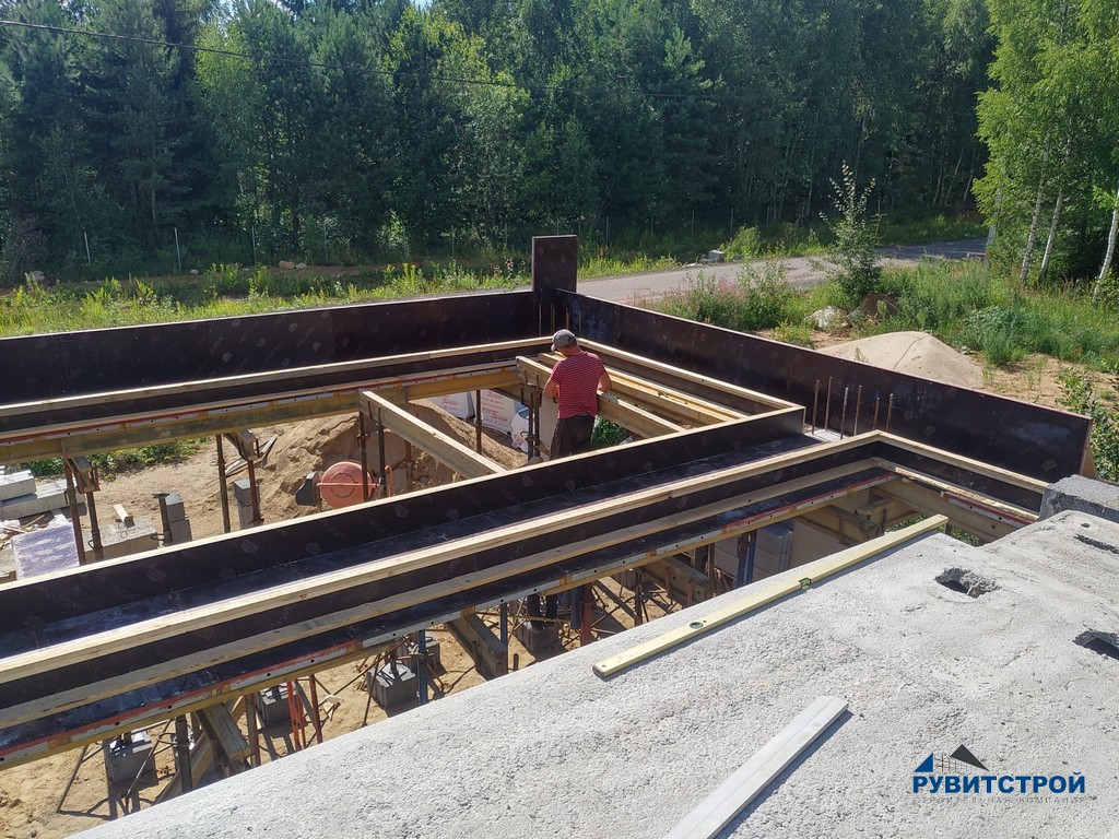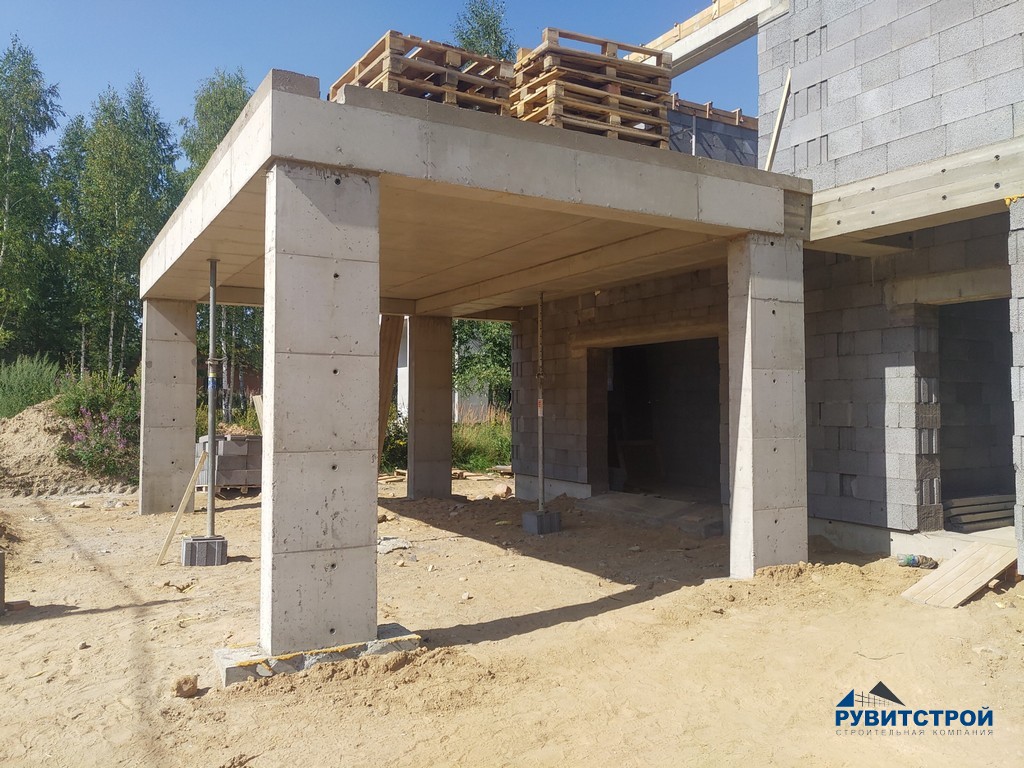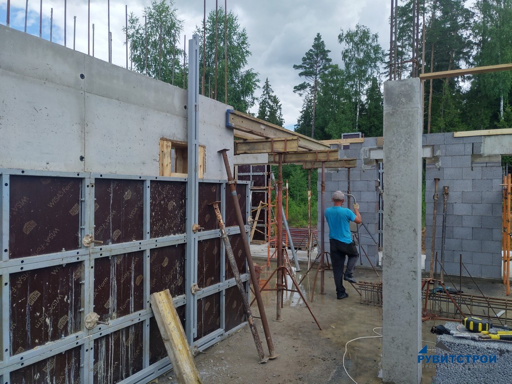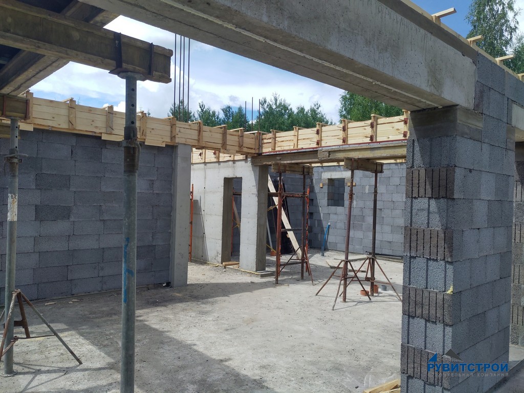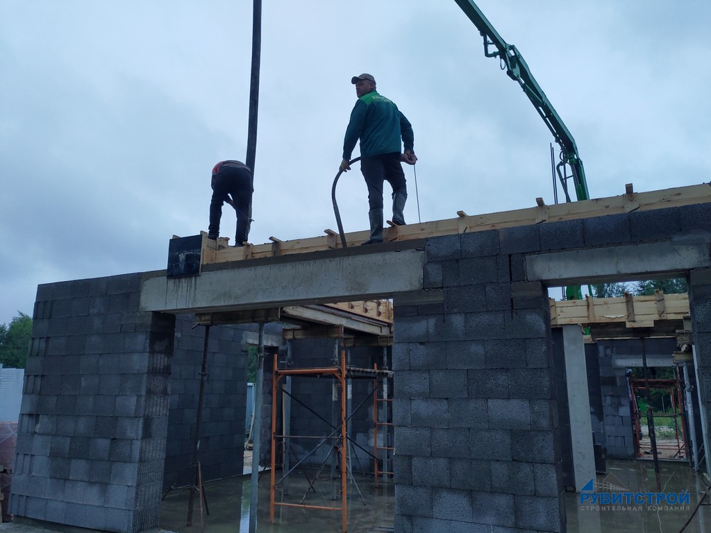 - Устройство монолитного железобетонного пояса, перемычек над окнами, балки, колонны