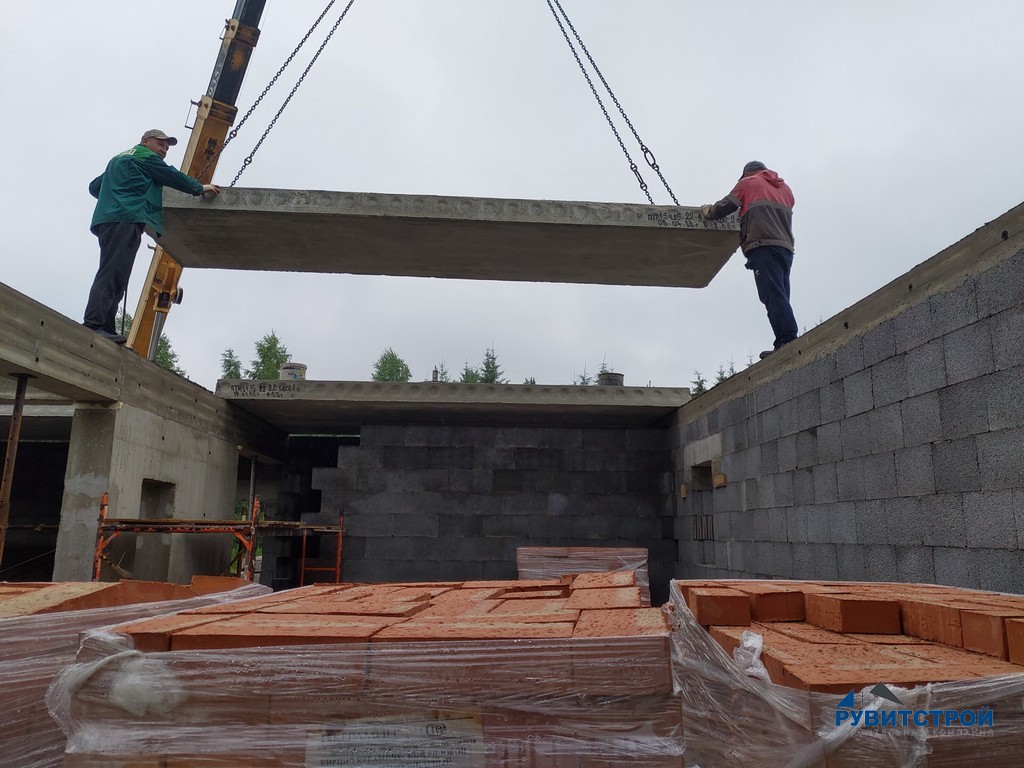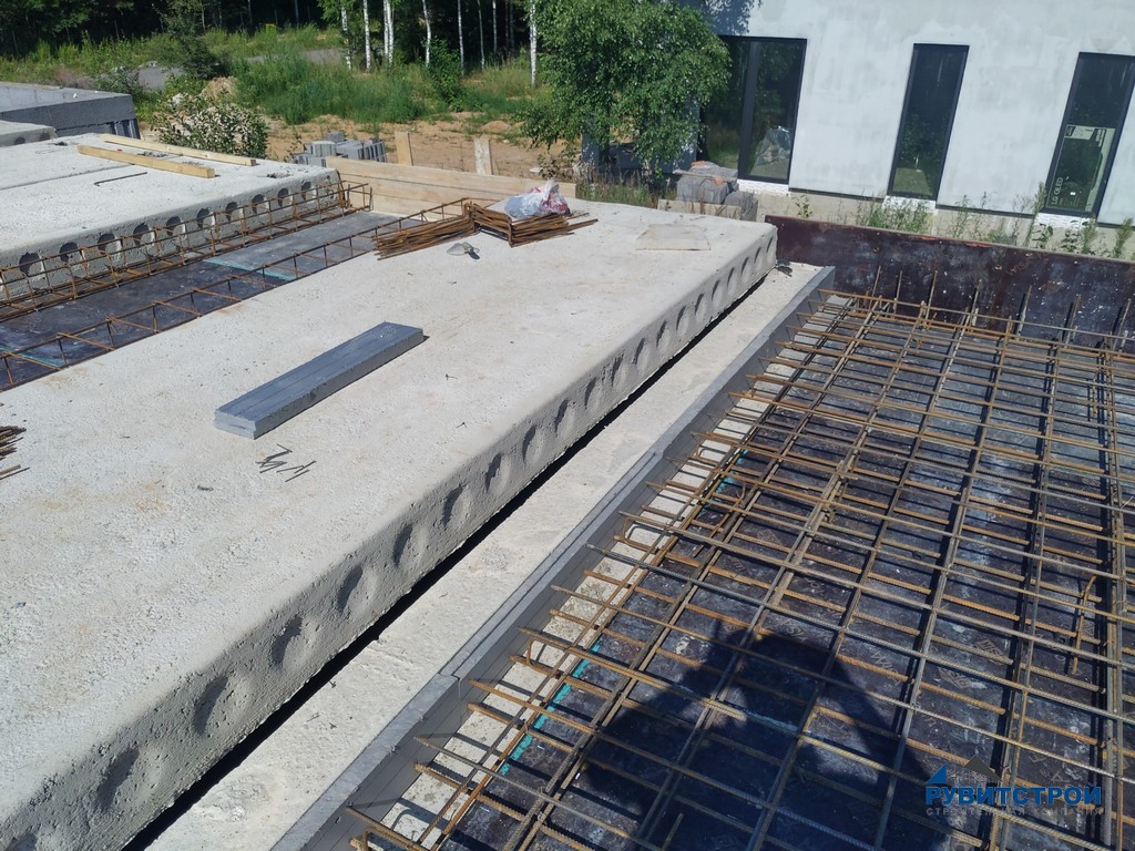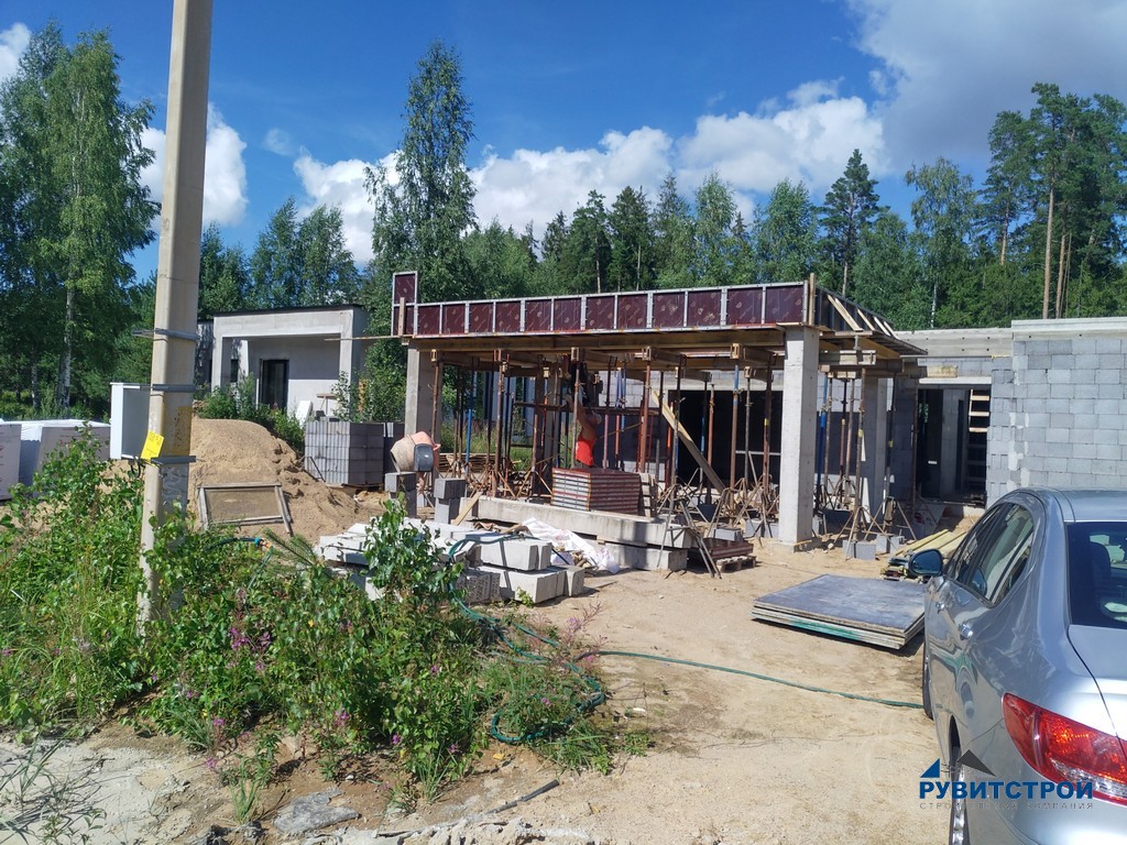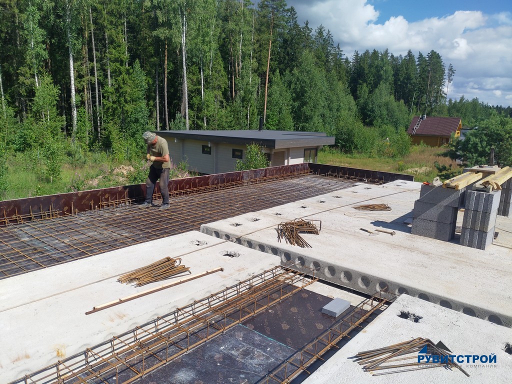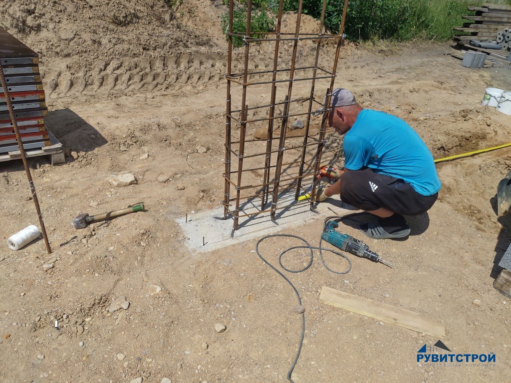 - Устройство монолитного железобетонного пояса, перемычек над окнами, балки, колонны